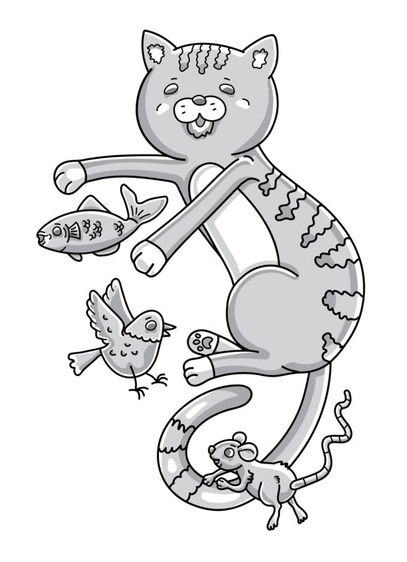 B&W Cat & Friends