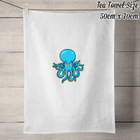 Blue Octopus - 100% Linen Tea Towel - Off White